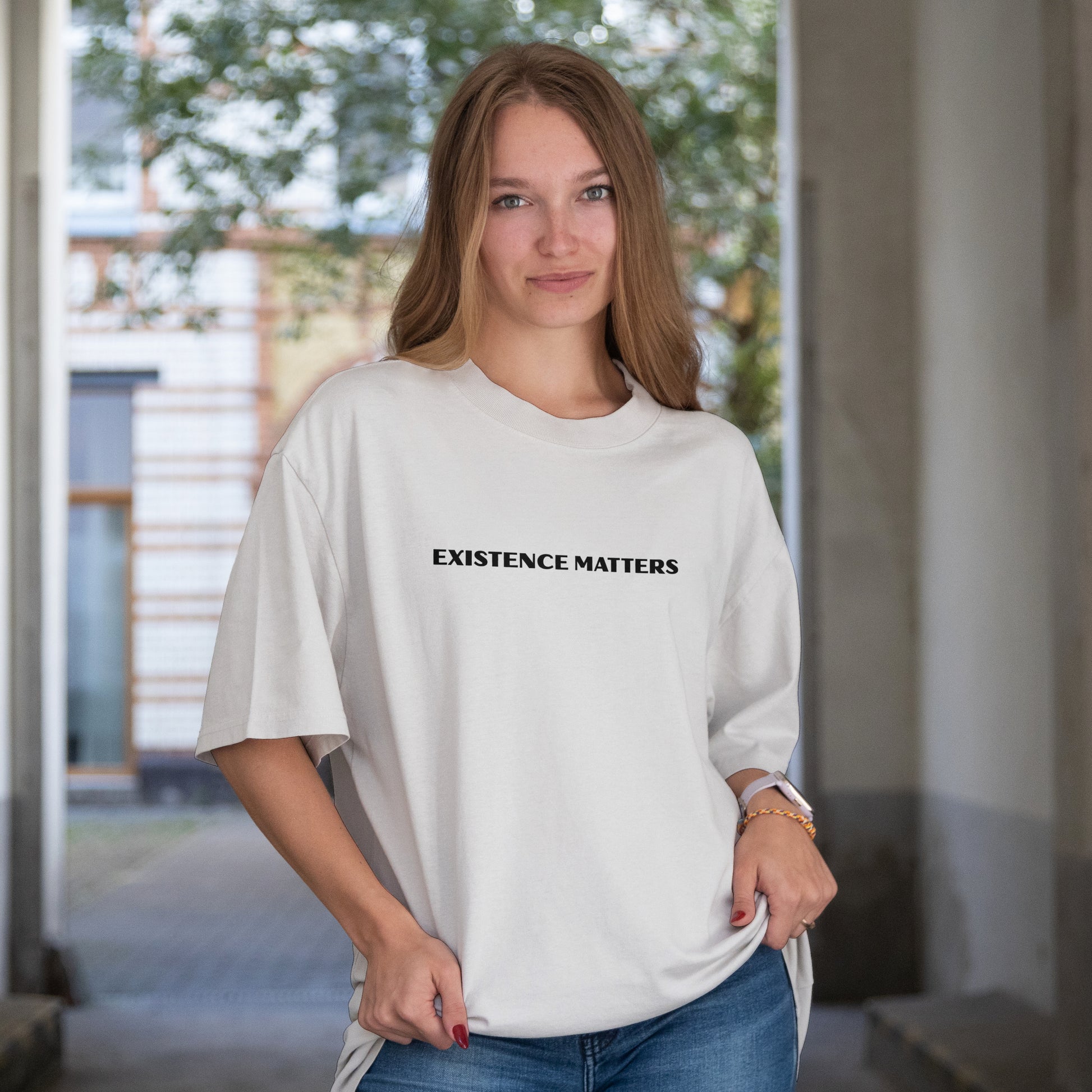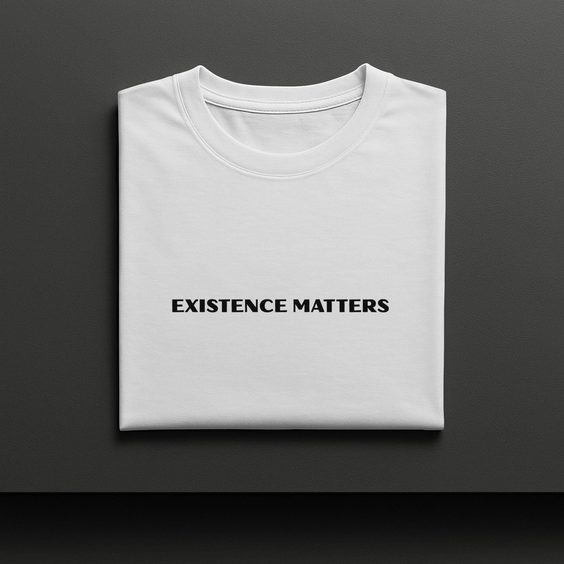 A statement in simplicity. The Existence Tee is crafted in an oversized silhouette, designed for comfort and effortless style. Featuring the bold message “Existence Matters” on the front and a striking handprint graphic with “I Am Here – Evidence” on the back, this piece is more than clothing — it’s presence, proof, and identity.